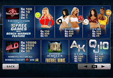 Специальные символы, которые имеет эмулятор, способствуют увеличению частоты и прибыльности призовых сочетаний. Свободные вращения slot активирует как только три Скаттера соберутся на поле. На этапе бесплатных спинов азартные игры порадуют функцией Bench Warmer, во время которой изображение одной из моделей заполнит первый барабан.