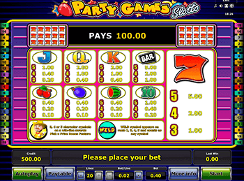 Party Games Slotto – игровой автомат от Novomatic, рассказывающий о приключениях опытного шерифа, можно будет играть бесплатно даже без наличия по близости сети Интернет. Оригинальные азартные игры познакомят новичков мира гэмблинга с забавным представителем правопорядка, который не привык сидеть на одном месте и с удовольствием гоняется за преступниками, позабыв об инстинкте самосохранения. С помощью шерифа игровой аппарат предлагает игрокам запустить новые бонусные раунды и испытать удачу в дополнительной игре.
