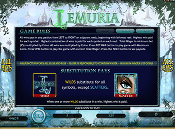 Предложенный автомат о легендарном континенте состоит из загадочных элементов, которые вам предстоит собирать на 5 барабанах. Слот будет платить вам за поимку черепов, кристаллов, растений и карточных знаков. Джокера в гаминаторе нет, но зато комбинации собирать нетрудно, так как в игре нет привычных линий (их количество неограниченно).